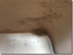 Every now and again I have to de-web the food lockers. When doing it a week or so ago, all of a sudden there was a swarm of spiders trying to get out as fast as they could and I got out of the way as fast as I could. When I got to the next locker that had the ball of spiders, (now I know what to look for and not freak out) I was able to get pictures. First one is the nest, second is of one of the spiders and third is when I disturbed them. You can click on the pictures to enlarge them. One of these days I’ll try to post a video of something.